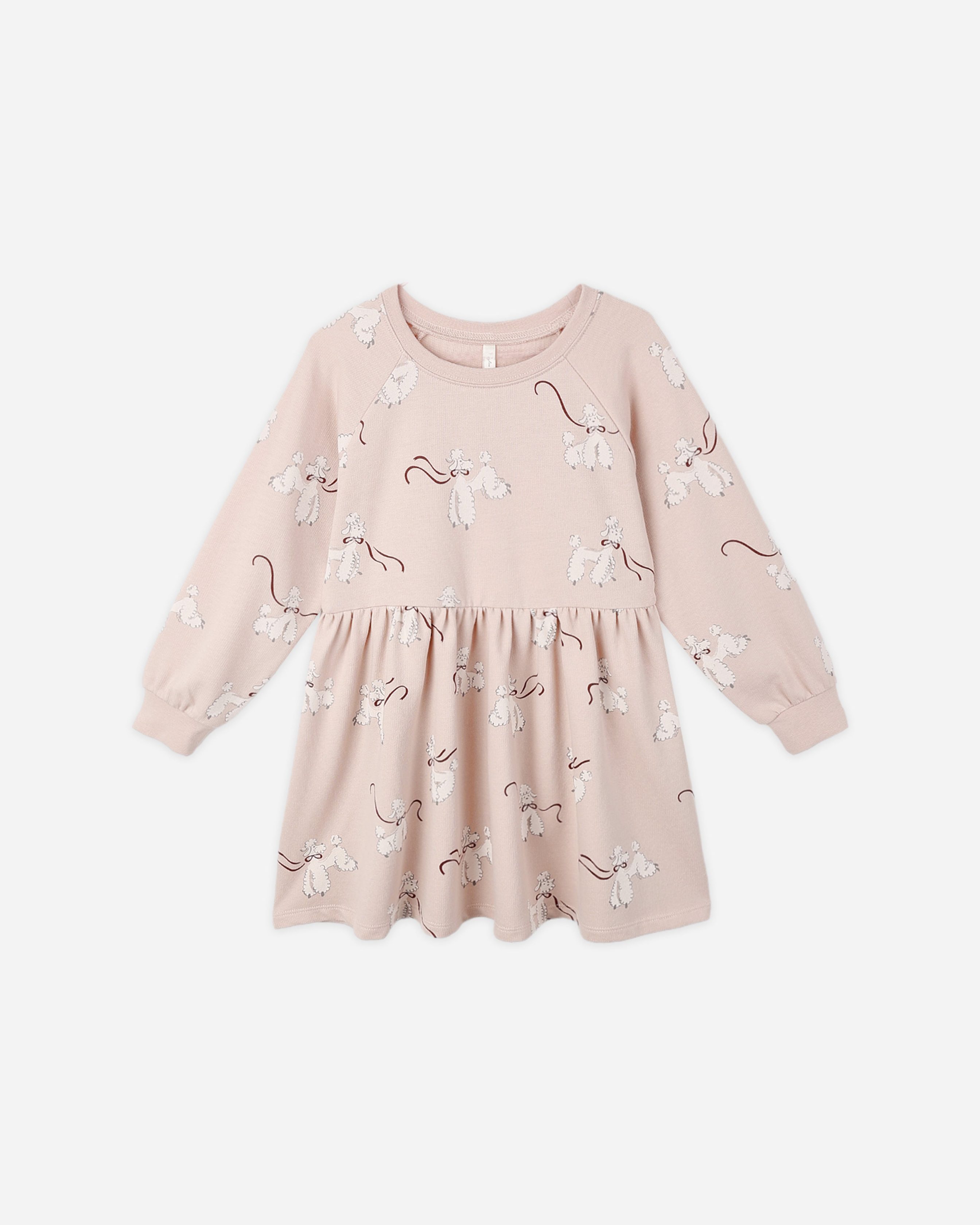 This long sleeve Raglan Dress features ribbed cuffs and neckline. with a gathered skirt for a playful silhouette.
