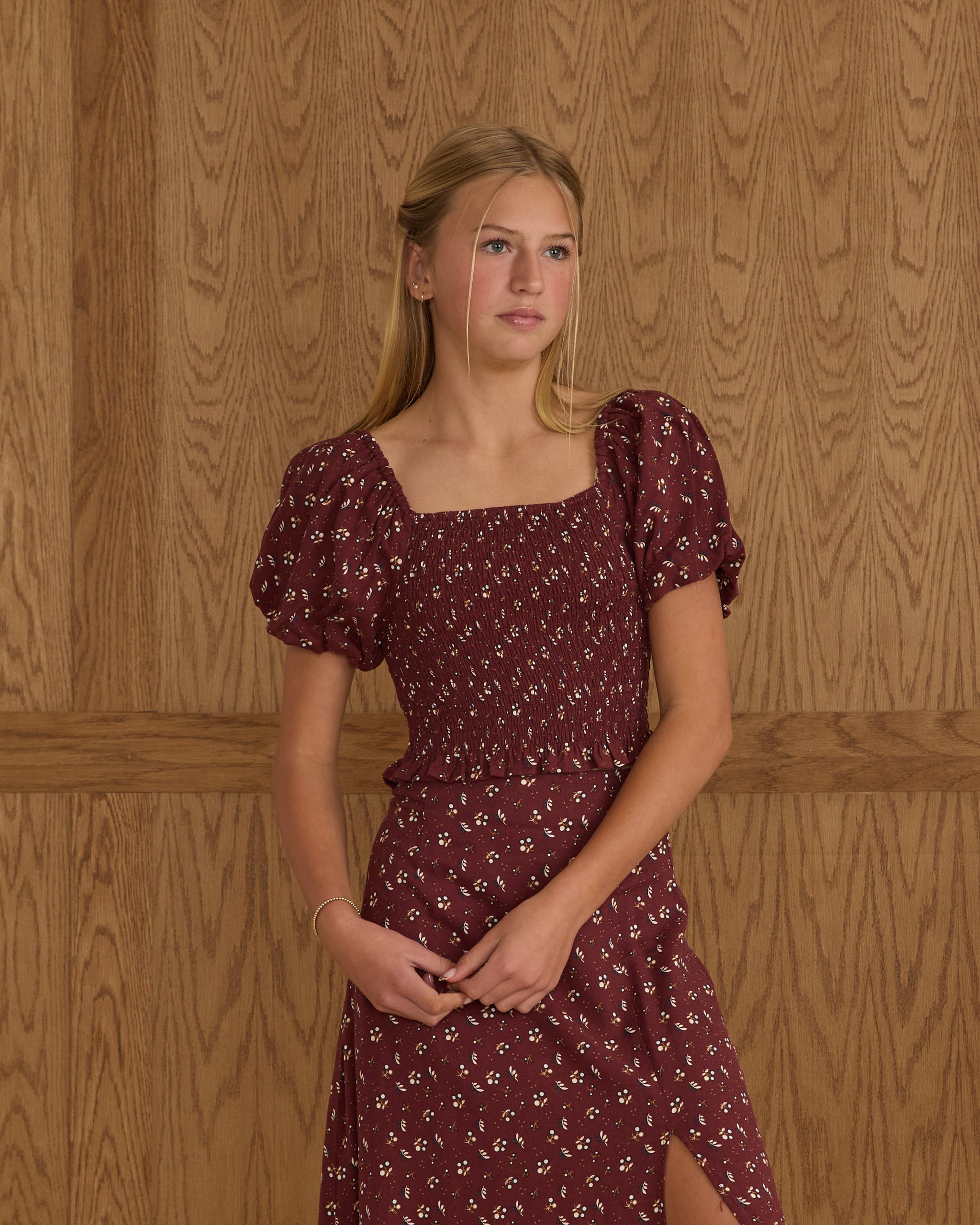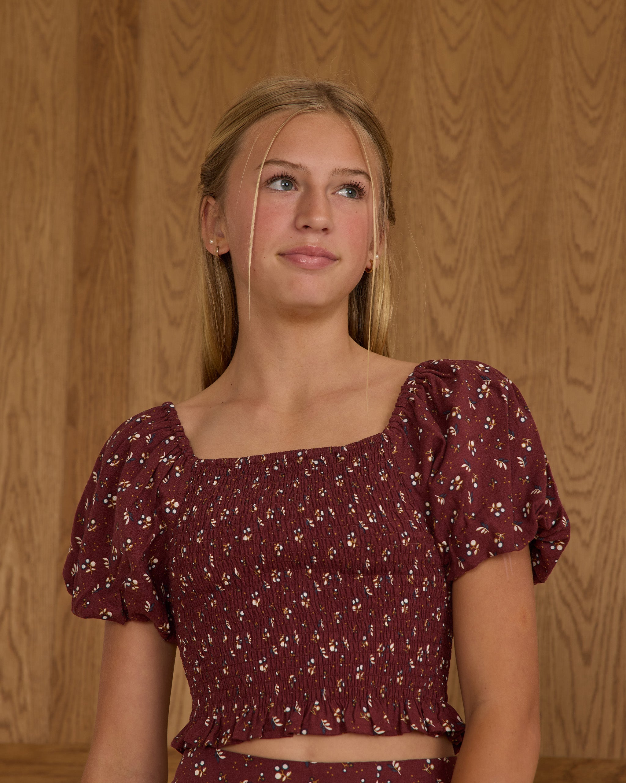 Our Trixie Top is a fun and flirty top to add to your wardrobe! Featuring a cropped fit with bubbled sleeves and a smocked bodice.